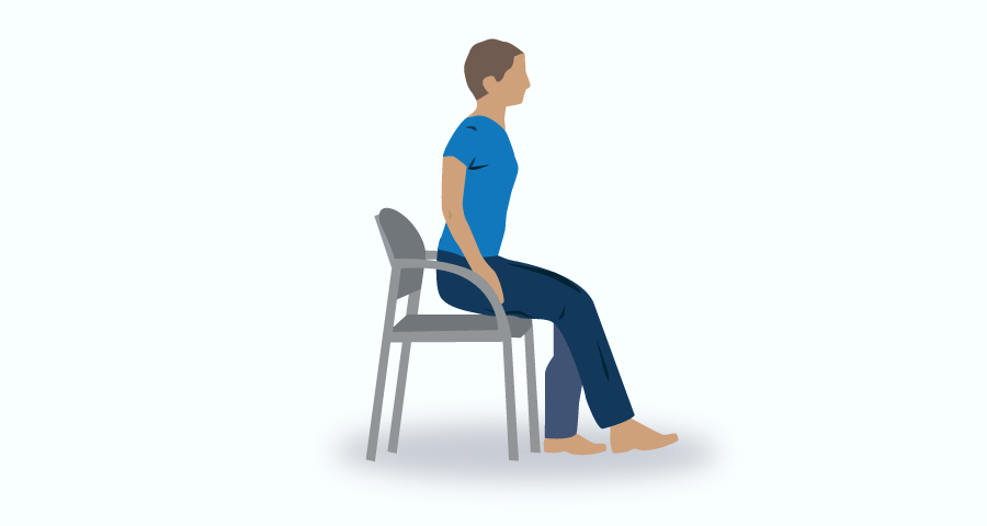 Start by sitting upright in a chair, with your feet flat on the floor.